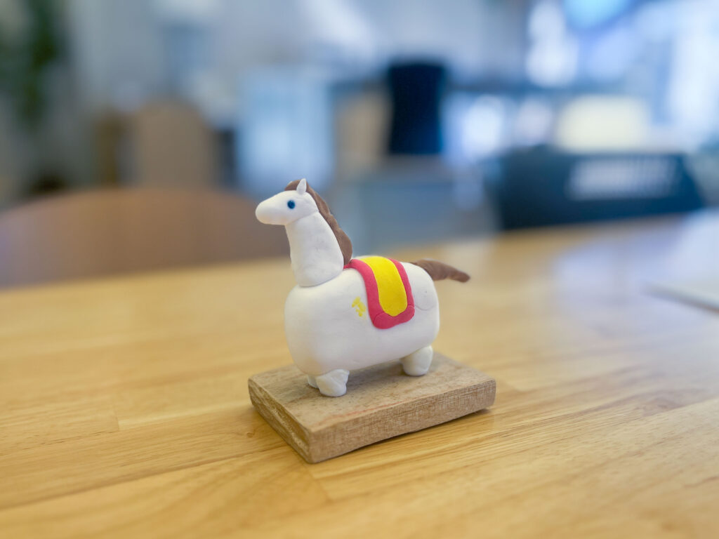 新年一発目の教室は「まんまる先生」こと高城満丸(みつまる)先生による造形ワークショップ! 新春、ということで今回のテーマは干支。やわらか粘土を使って今年の干支であるウマ🐴を作ります。