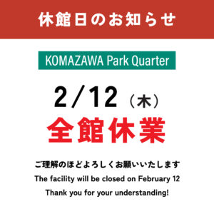 【お知らせ】2月12日(木)KOMAZAWA Park Quarter 休館日のお知らせ
