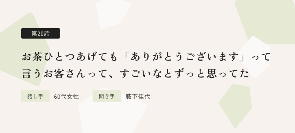 今週の生活史は60代の女性。