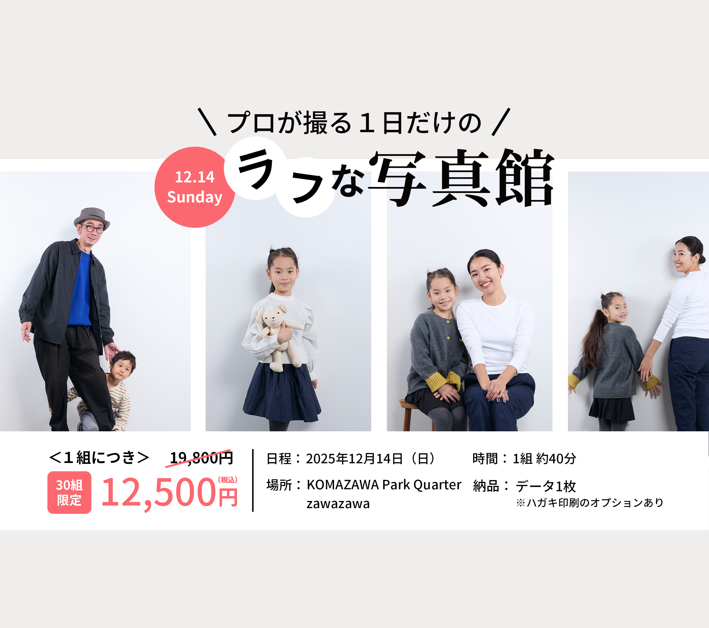 先着30組!プロが撮る1日だけの写真イベント「ラフな写真館」開催|12月14日(日)