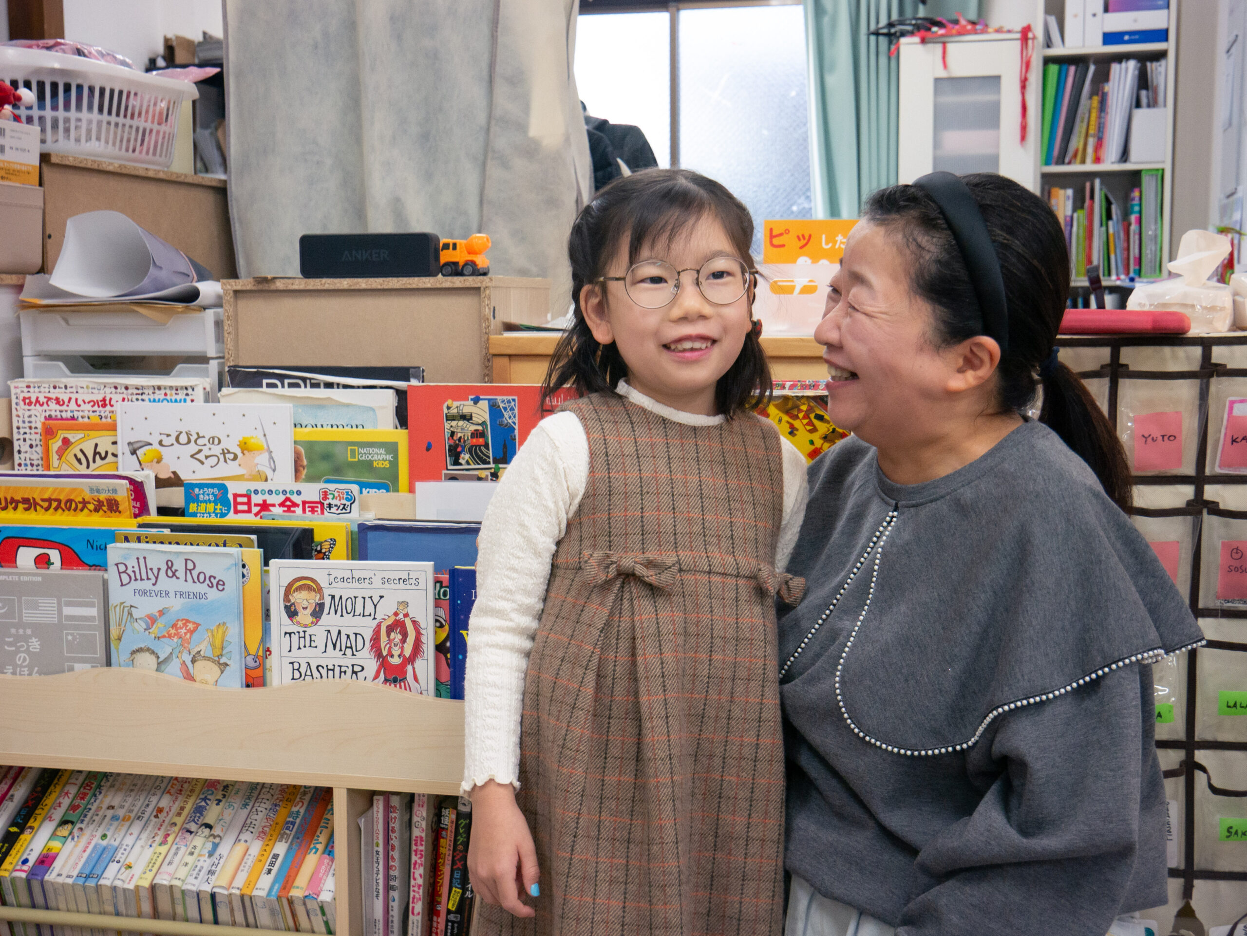 初めての記者活動となる小学2年生の湊 春乃(はるの)ちゃん。取材先に選んだのはこもれびスタジオから歩いてすぐ、自身も通う英語学童の「コトリバ」。