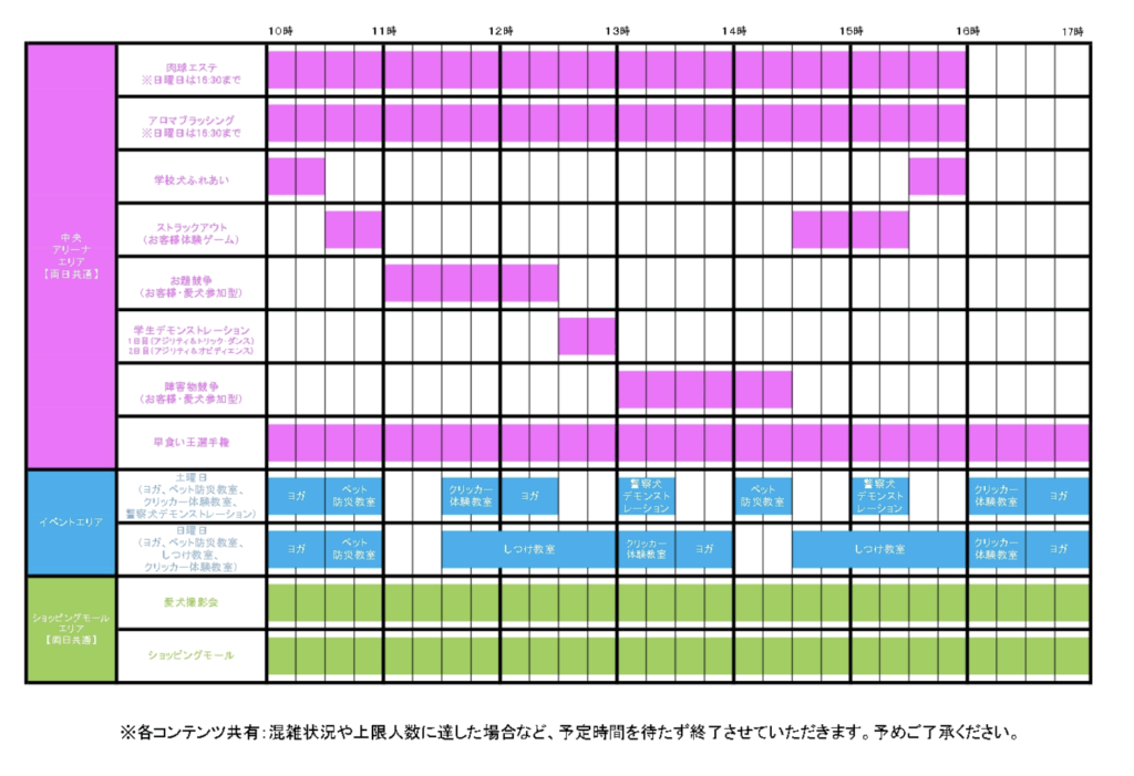 当日は肉球エステやアロマブラッシングなどのケア体験から、障害物競争、早食い王選手権まで、ワンちゃんと一緒に楽しめる企画が盛りだくさん! シモゾノ学園の学生によるデモンストレーションや、お題競争のような参加型コンテンツもあり、ワンダフルな1日になること間違いなしです🐶