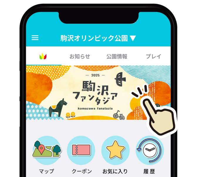 アプリを開いて駒沢ファンタジアのバナーをタップ