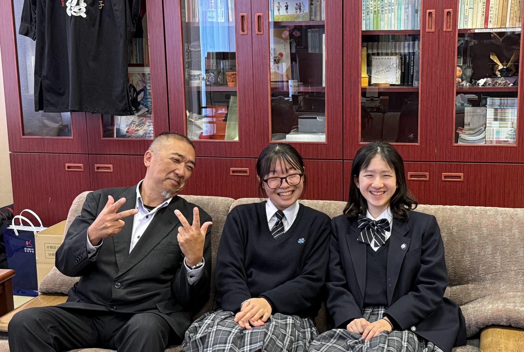 校長先生と話すのははじめてでした。取材前は、話の流れをイメージしながら、質問をする順番を考えるのがとても難しかったです。取材中は、元々考えていた質問が先生のお話の中に出てきて、少し驚いたけど対応できてよかったです。記事のまとめでは、先生の口調をそのまま書くと校長先生らしさがより出て、わかりやすくなった気がします。生徒としてでなく、記者として学校に入ることができたのが、新鮮で楽しかったです。