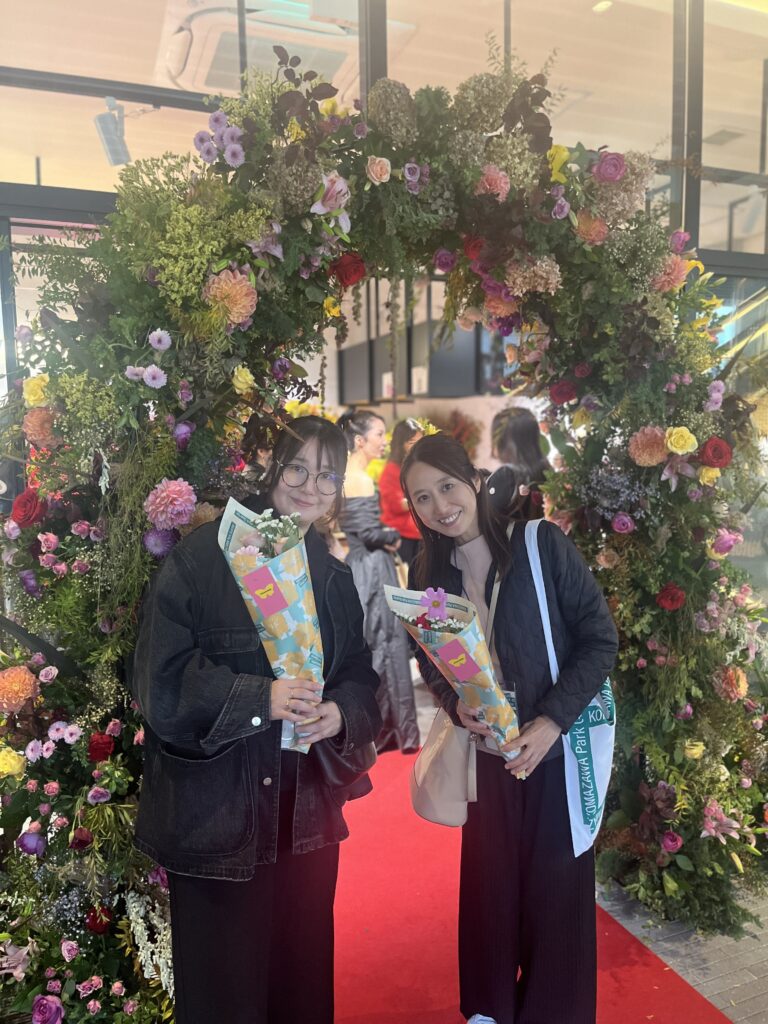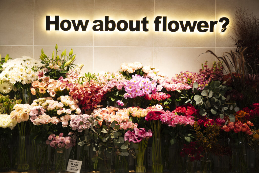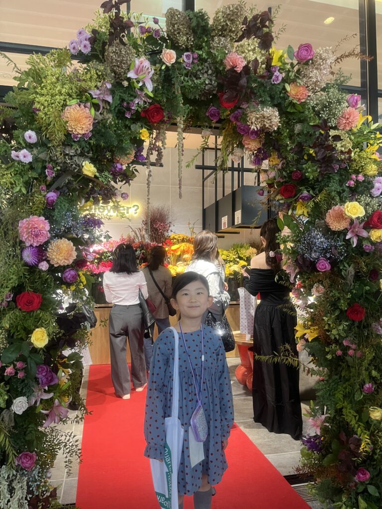 1Fの花屋「#flowership」は、オープン記念として、写真映えするかわいらしいフラワーゲートが設置されていました。入り口前で記念撮影をするお客さんが後を立たず、館内には#flowershipで選んだ花を持ちながら、館内を散策するお客さんがたくさん。