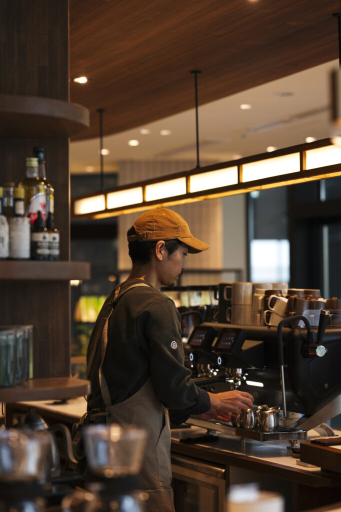 2Fのカフェ「WOODBERRY COFFEE」は用賀が本店。10店舗目となる駒沢店は広々とした店内で、カウンターの中にはレコードのコーナーも。店頭ではコーヒー豆やオリジナル商品なども購入できます。