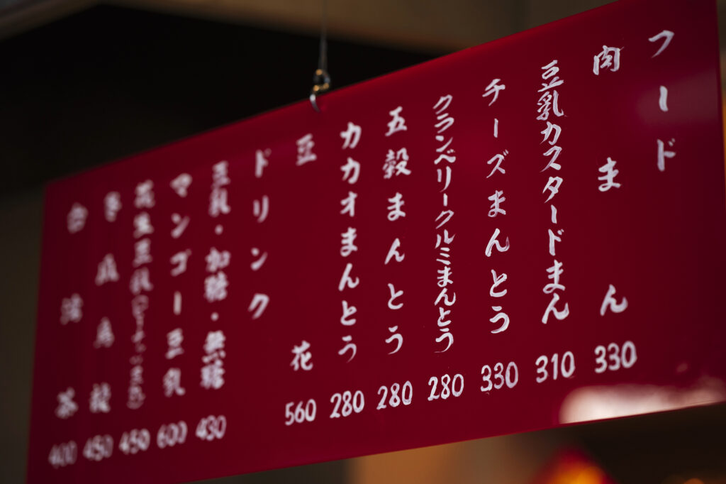 1Fの肉まん専門店「鹿港」はたちまち大行列に。店頭のメニューには、本店とは違ったいろんな味の饅頭(まんとう)のラインナップがずらりと並んでいます。看板商品の肉まんも、本店は塩味ベースですが、駒沢店では醤油味ベースのきくらげや筍といった歯ごたえのある具材の肉まんを楽しむことができます。