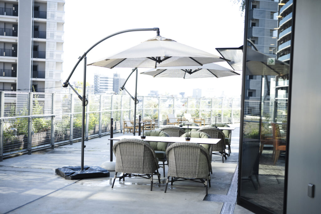 屋上は青い空が気持ちよく抜けて、駒沢の街を一望することができます。夜には綺麗な夜景が目の前に広がり、記念撮影している人たちもたくさんいらっしゃいました。