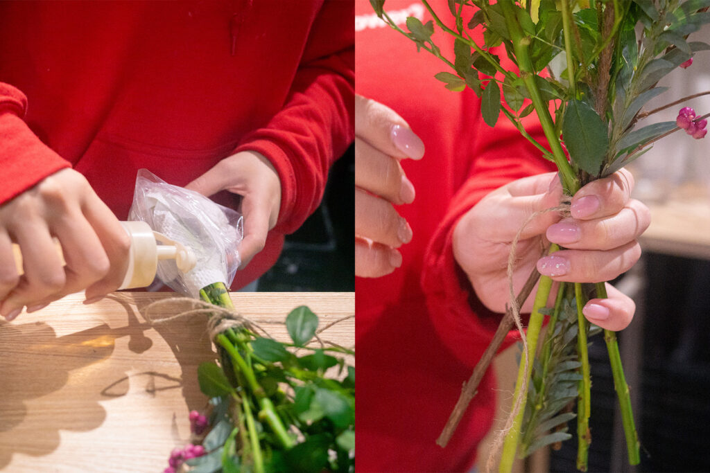 ラッピングに忍ばせたお水は一時的なもの。長く楽しむために、早めに花瓶へ!