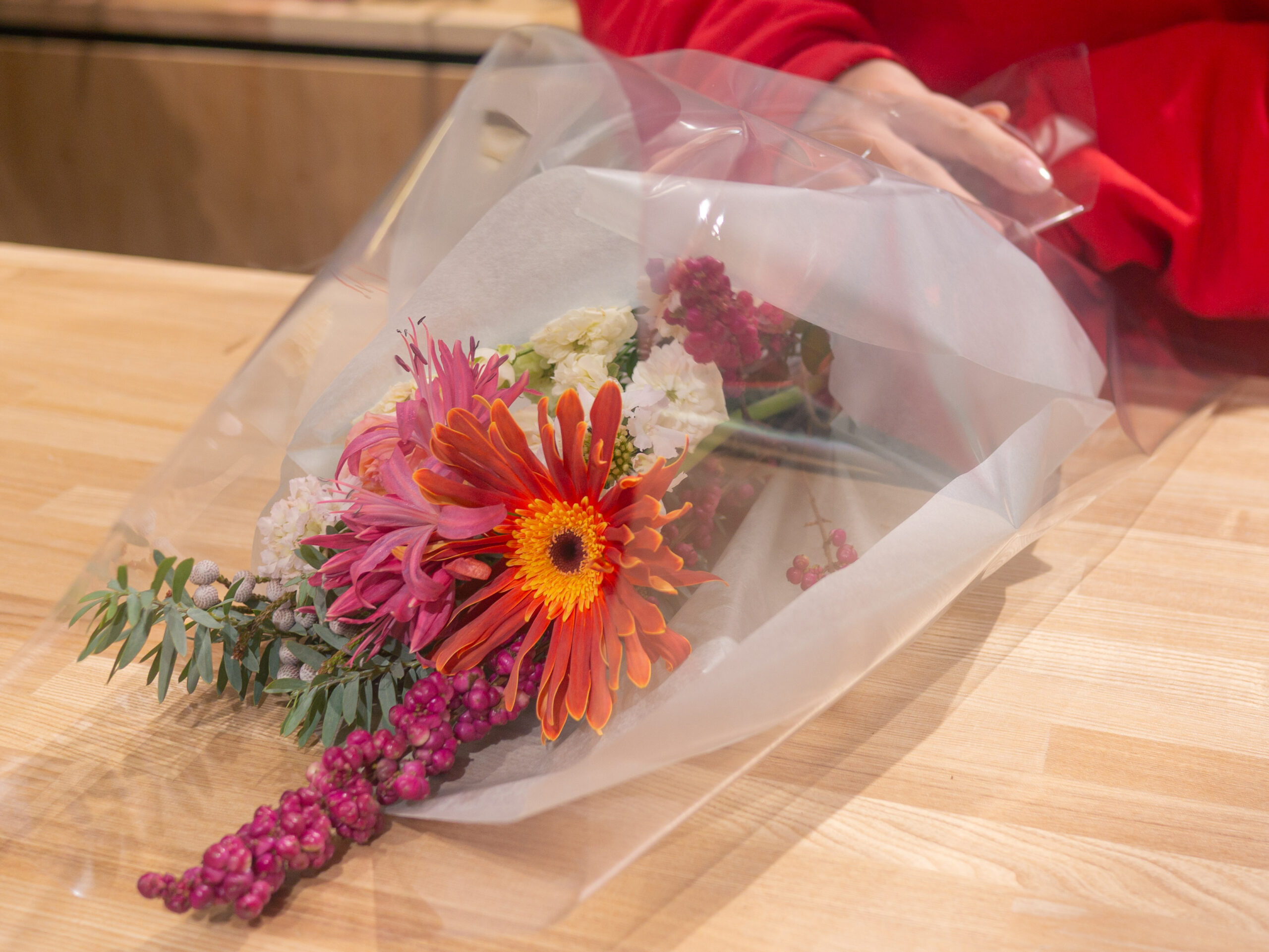 ご自宅用の花とは違い、豪華な見た目を演出してくれるラッピングですが…