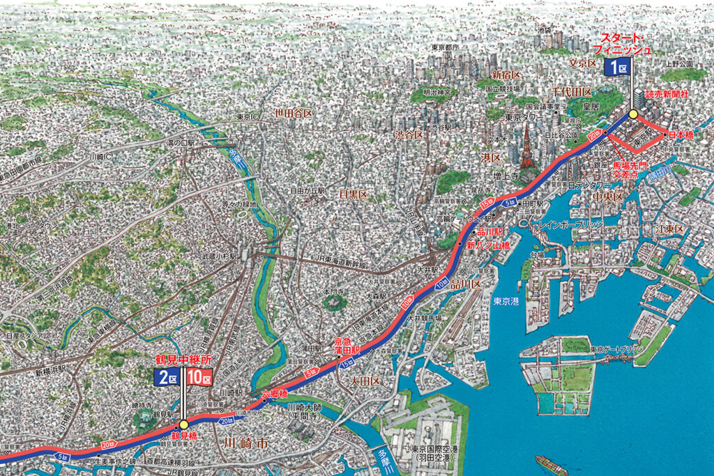 レースの主導権を握るうえで欠かせないこの区間には、スピードを武器とする選手が集まります。長い直線のあとに差し掛かる17km過ぎの六郷橋が、勝負のポイントとなります。