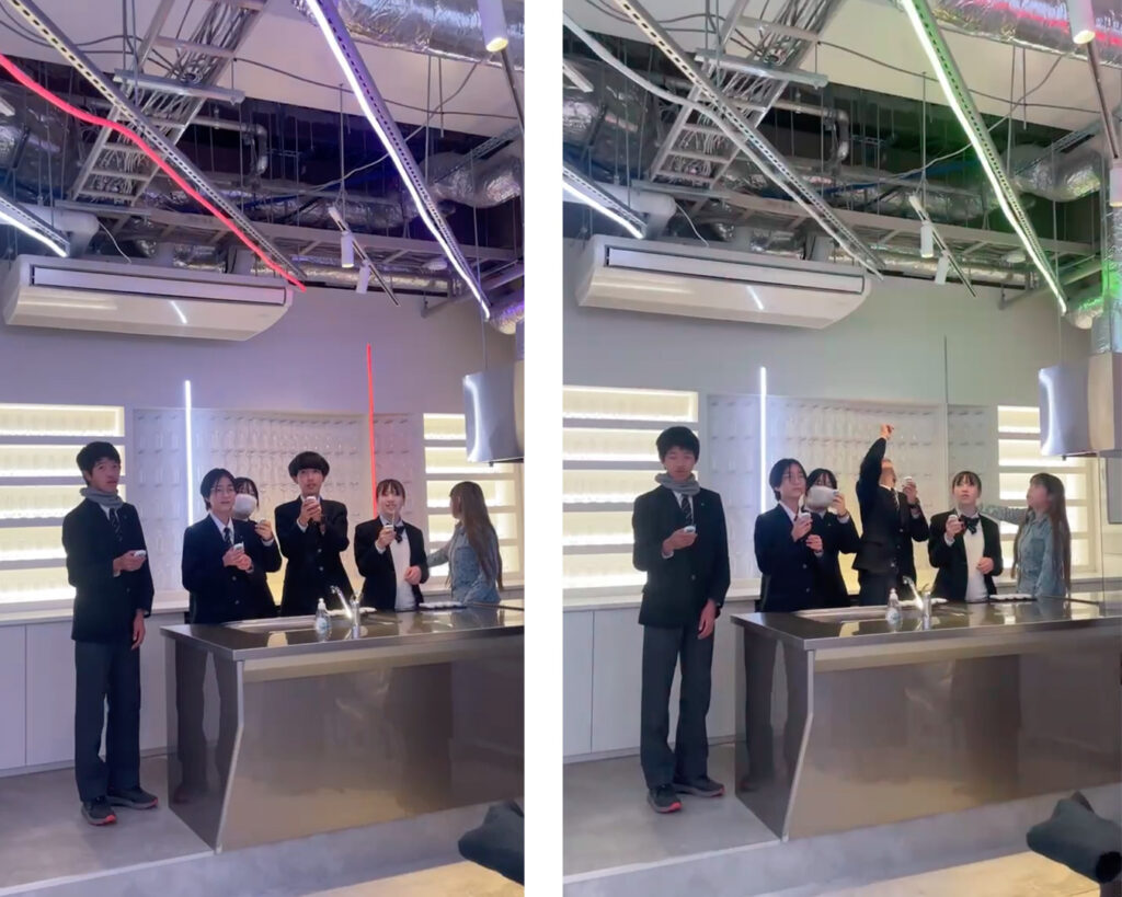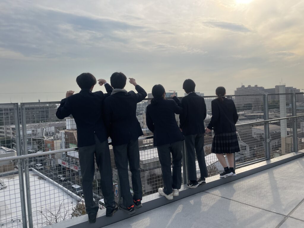 最後は駒沢パーククォーターを見学。地下1階から屋上までをぐるっと一周。地下スタジオ「zawazawa」の七色に変化する天井照明や、屋上から見える景色に盛り上がりました。