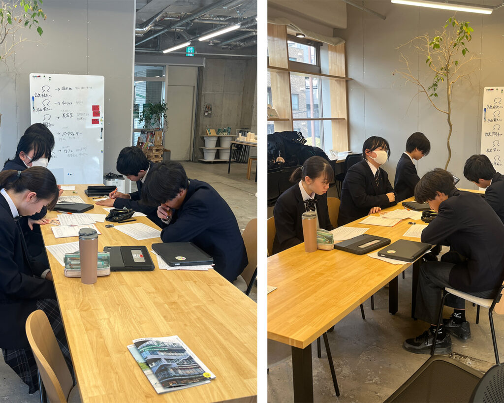 職業体験1日目は早速インタビュー! と、その前にまずは質問内容を準備します。それぞれ取材先を選び、聞きたい質問を整理します。今回取材先として訪れたのは…