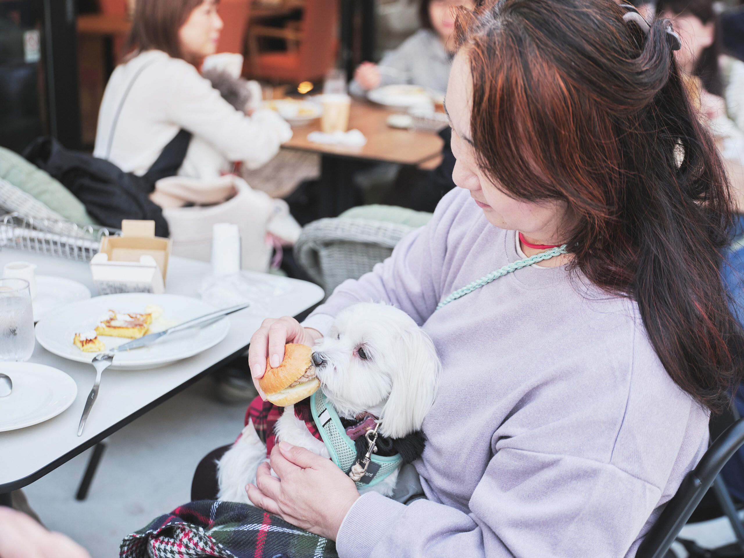 公園の緑を彷彿とさせる植栽豊かなパーククォーターは、ドッグフレンドリーな環境が整っているのも特徴です。館内にはわんちゃん同伴可能なエリアがあり、テラス席で一緒に過ごせる飲食店もあります。