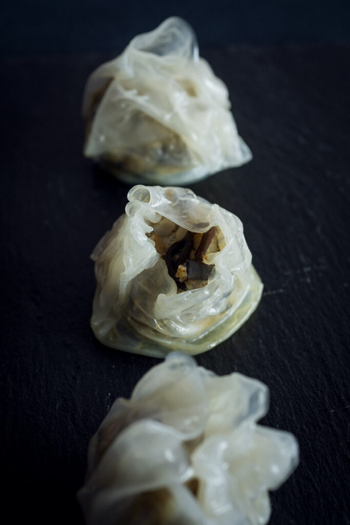 米粉の生春巻きの皮をしたグルテンフリーのシュウマイ。具材は庄内豚、キクラゲ、蓮根が入っていて、キクラゲはグルテンを消化しやすく、蓮根は花粉症に効く食材です。食べながら健康になれる嬉しい一品。
