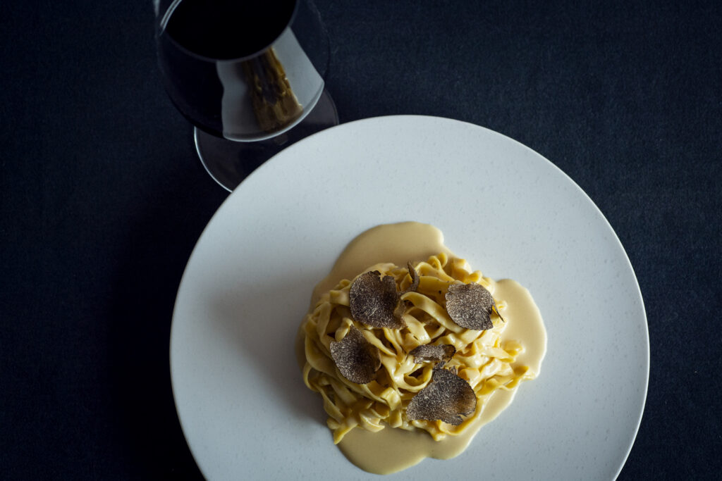 ヨーロッパから取り寄せた大きなトリュフを贅沢に使ったクリームパスタ。トリュフの芳醇な香りは、ぜひ赤ワインと味わってほしいです。