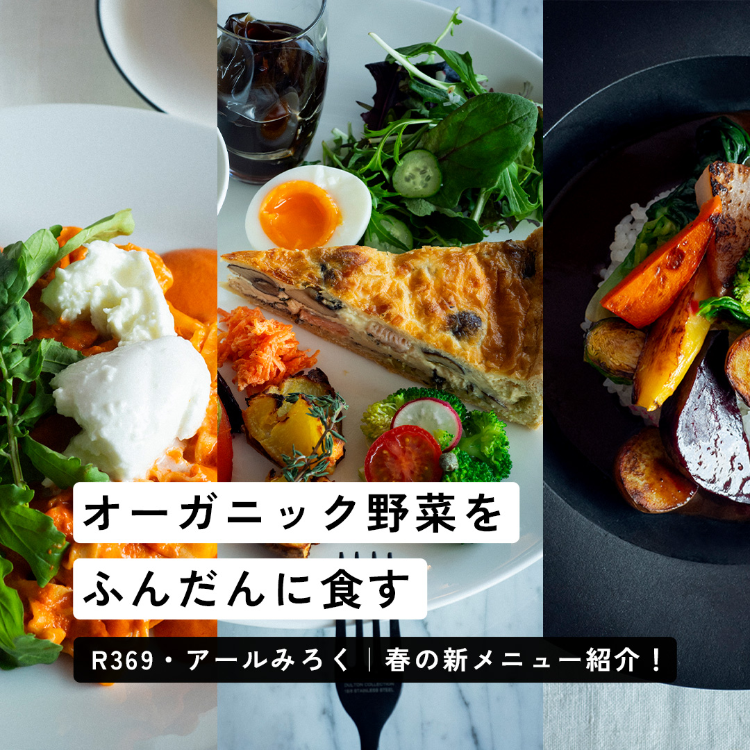お友だちとのおしゃべりランチ、ご家族のカジュアルなひととき、一人でゆっくり。思い描く人の数だけシーンが楽しめます。この春、ぜひあなたの身体がよろこぶ一皿を見つけにR369(アールみろく)へ足を運んでみてください!