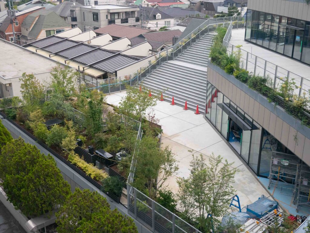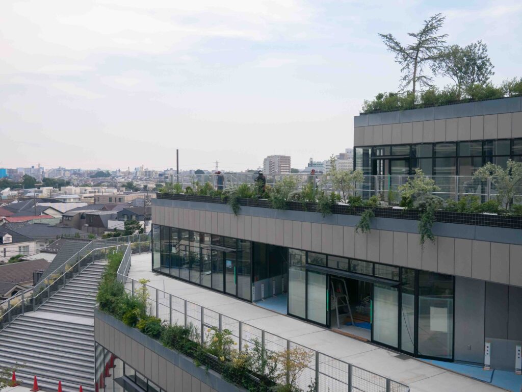 屋上の緑やテラス、店舗の内装など、少しずつ完成形が見えてきた風景を写真でご紹介します。開業までの時間を、写真を見ながら一緒にワクワク感を高めていきましょう!