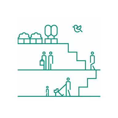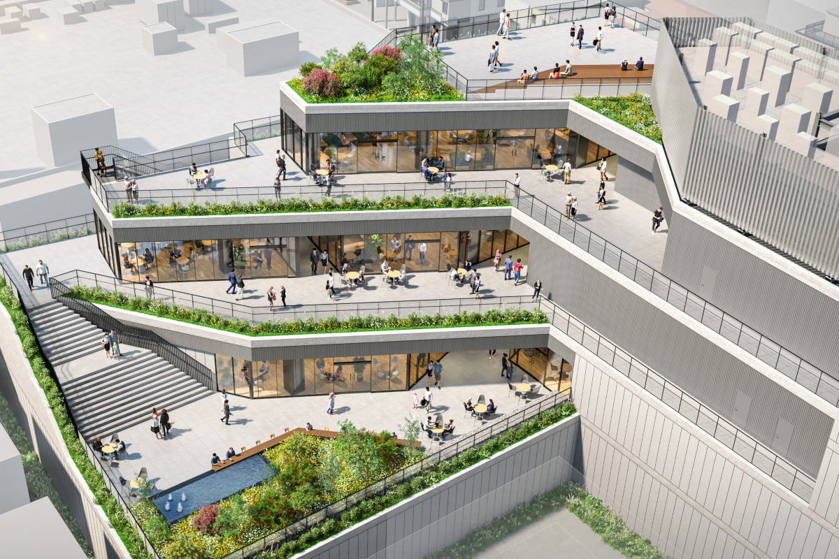 パークサイドのような開放的な雰囲気で、246の喧騒からふっと離れられる空間設計。これまでの駅前にはなかった穏やかな雰囲気と、居心地のよい利用シーンを提供します。