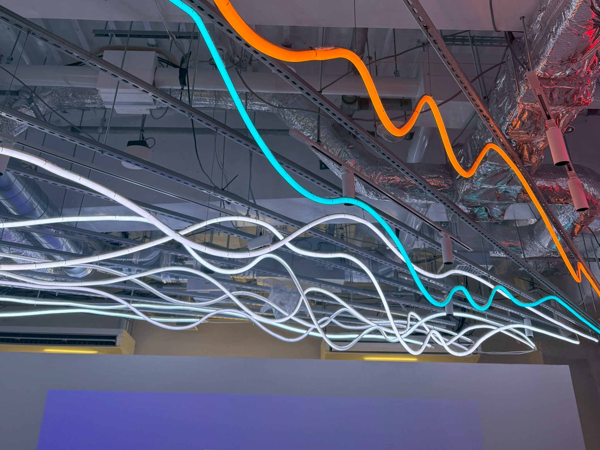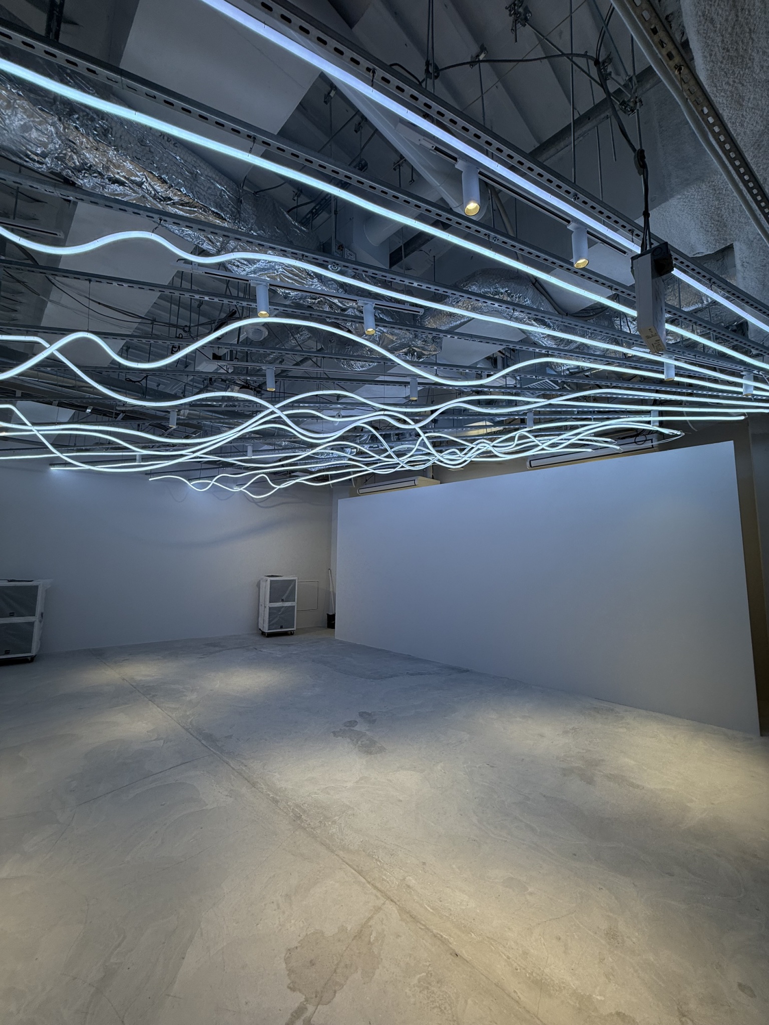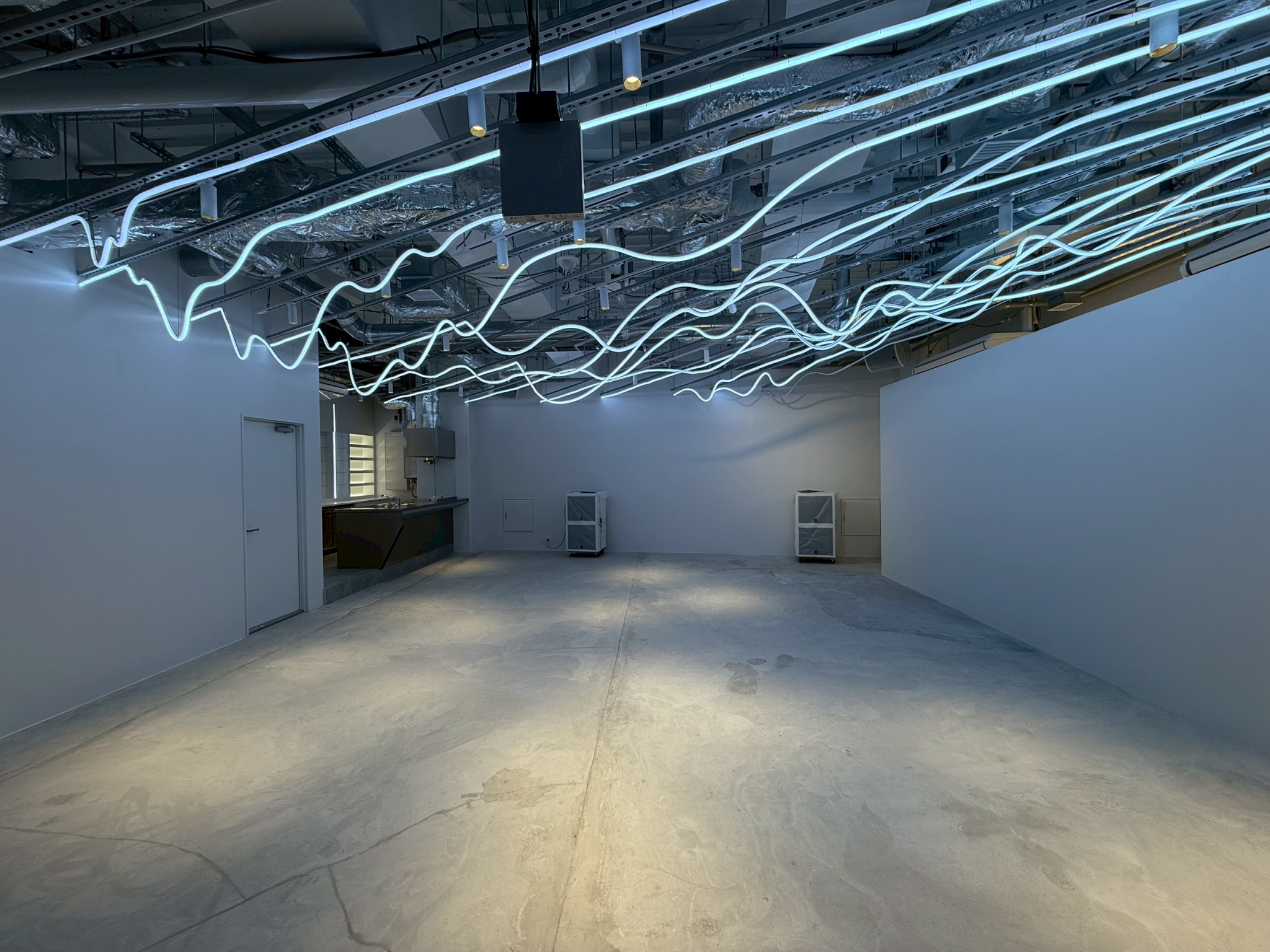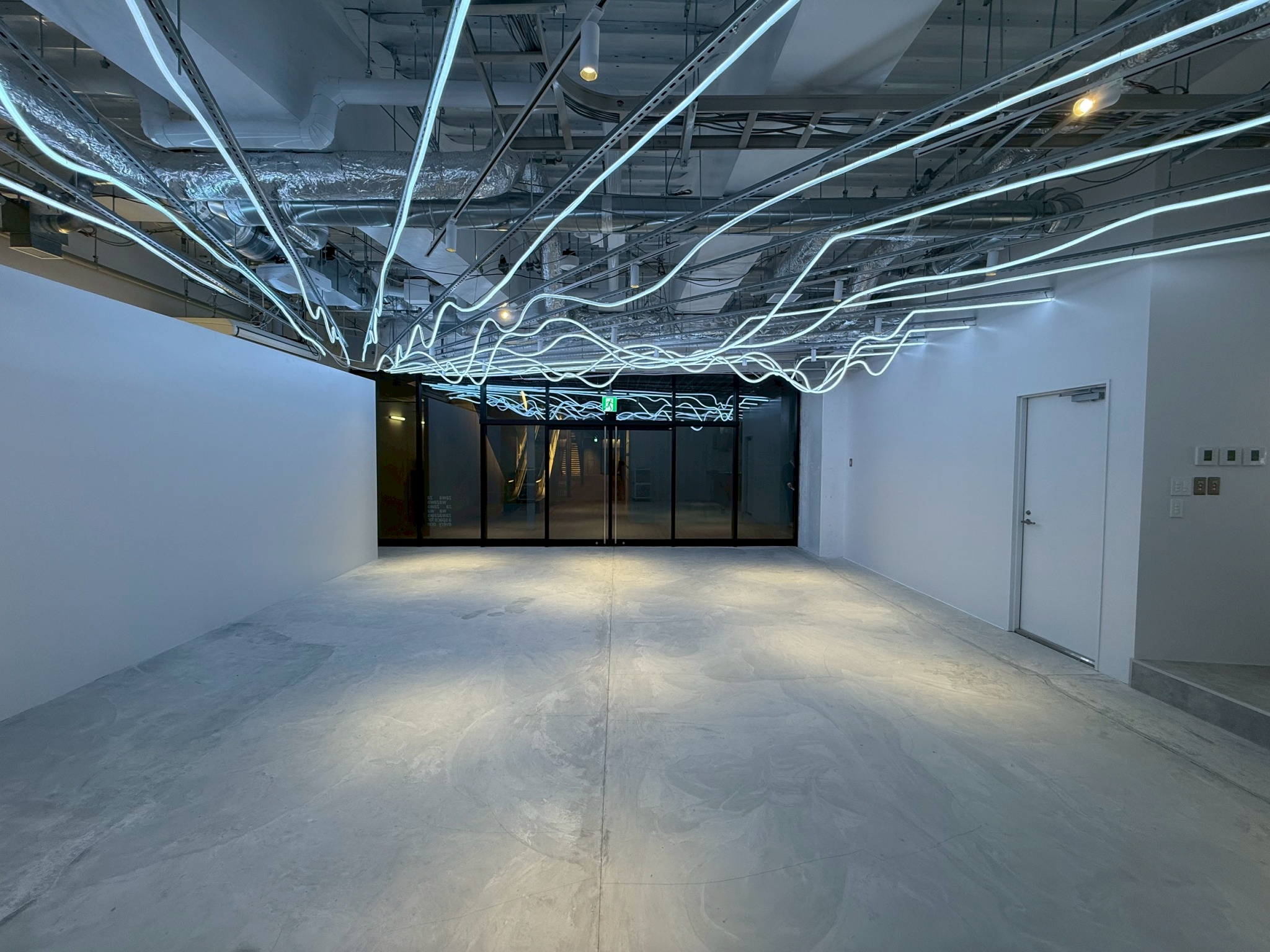 KOMAZAWA Park Quarter地下に位置する約100㎡のスタジオ「zawazawa」は、コンクリートの質感とネオン風照明が印象的な多目的スペースです。