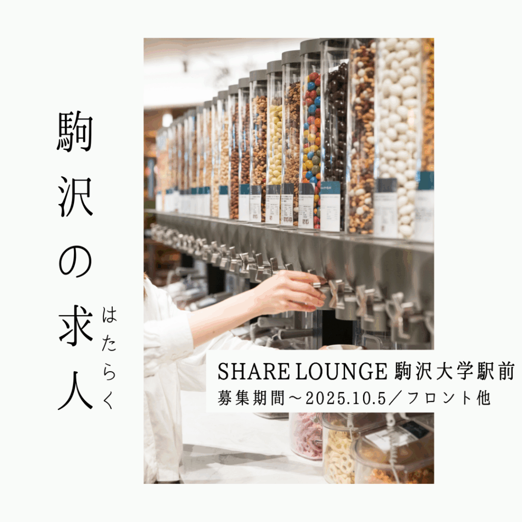 【オープニングスタッフ募集】駒沢で初めての「SHARE LOUNGE」いっしょにくつろぎ空間をつくりませんか?