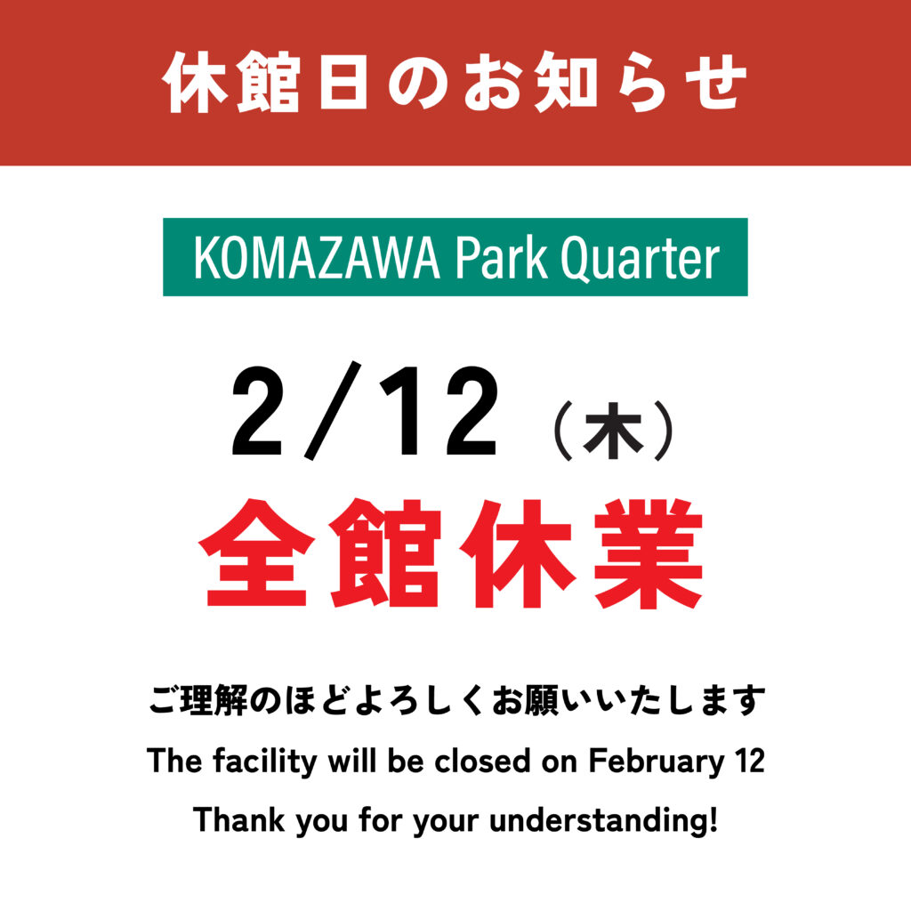【お知らせ】KOMAZAWA Park Quarter 休館日のお知らせ